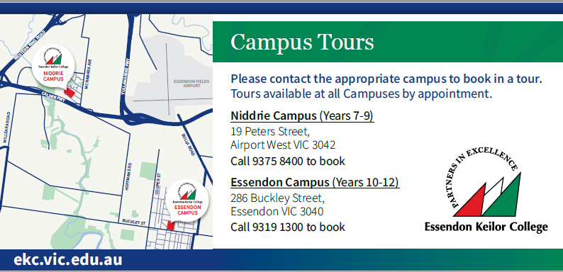 Tours will run weekly and will be led by the College or Campus Principal. Times and dates for tours are flexible based on your availability.